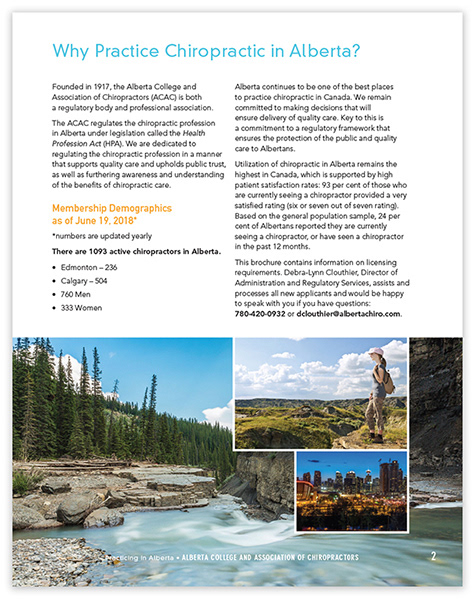 A simple brochure for the Alberta College and Association of Chiropractors.